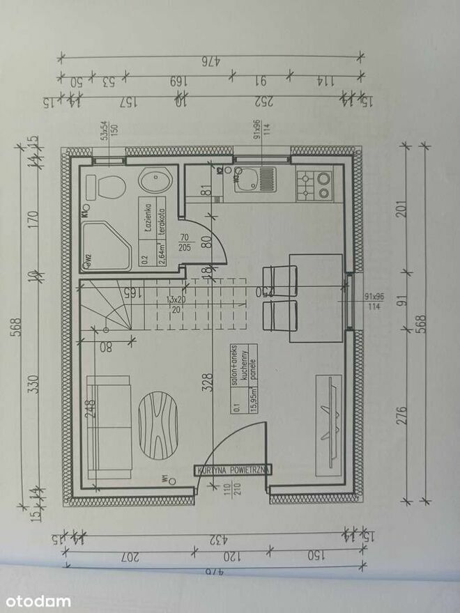 - drewniana konstrukcja, solidnie ocieplony (15 cm wełny + 10 cm styropianu),