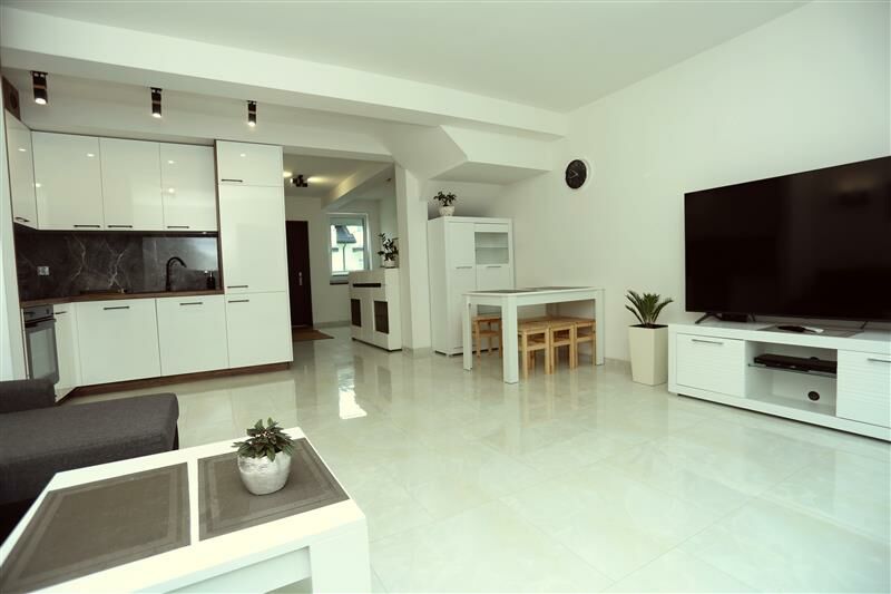 Dom na Wynajem w DarłowieZapraszamy do wynajęcia domu w nadmorskiej miejscowości Darłowo. Wnętrze: Salon z Aneksem Kuchennym: Nowoczesny i przestronny salon z komfortowym narożnikiem, telewizorem i stolikiem kawowym, połączony z w pełni wyposażoną kuchnią (lodówka z zamrażarką, płyta grzewcza, piekarnik, zmywarka).Łazienka i WC: Duża łazienka z kabiną prysznicową, pralką, suszarką oraz umywalką z lustrem.Dwie Sypialnie: Na piętrze znajdują się dwie przestronne sypialnie - jedna z trzema pojedynczymi łóżkami i szafą, druga z dużym łóżkiem małżeńskim, szafą, fotelem i szafką RTV.Na piętrze osobne wc Na zewnątrz: Duży Taras: Idealne miejsce do relaksu - taras wyposażony w stół, krzesła ogrodowe i parasol.Mały Ogródek: Ciesz się prywatnością i bliskością natury w naszym urokliwym ogrodzie.Parking: Bezproblemowe parkowanie dzięki jednemu miejscu parkingowemu przed domem. Istnieje możliwość zaparkowania dwóch samochodów.Na parterze zewnętrze rolety antywłamaniowe.