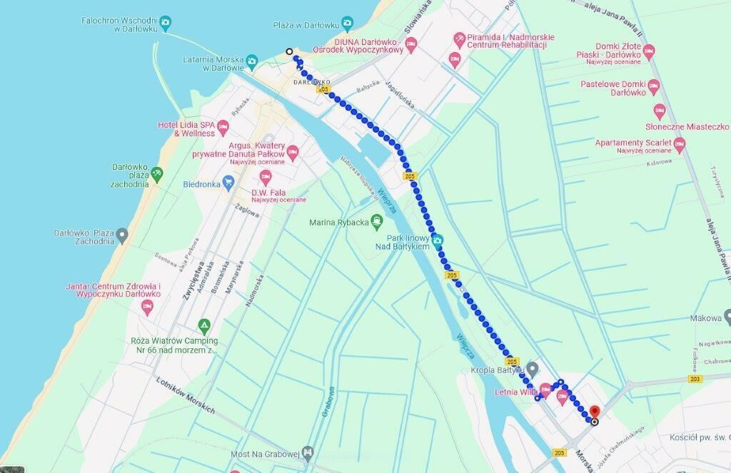 nowe domy jednorodzinne. Do morza można dojść różnymi ulicami.