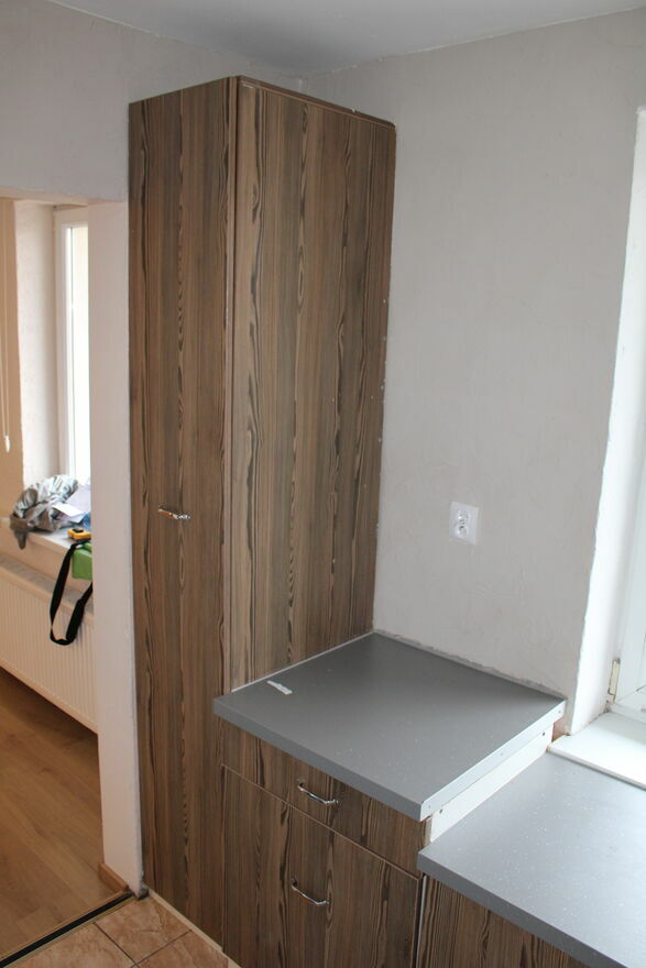 kuchnia z trzema szafkami typu cargo oraz przyłączem pod kuchenkę gazową (możliwość pozostawienia lodówki),